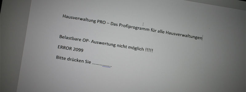 Belastbare „OP-Listen“, getrennt und übersichtlich ausgewiesen nach Forderungsgruppen sind die unabdingbaren Voraussetzungen einer fundierten Beitreibung von Forderungen und einer qualifizierten Information an den Eigentümer. Wir entwickeln derzeit ein entsprechendes EDV-Tool, was als Ergänzung zur bestehenden Software in der Lage ist, insbesondere unregelmäßige Zahlungen richtig zu verbuchen und korrekt auszuweisen. Auf Wunsch können die Daten per Schnittstelle in den Mahnlauf oder direkt in einen Antrag auf Durchführung des gerichtlichen Mahnverfahrens übernommen werden.